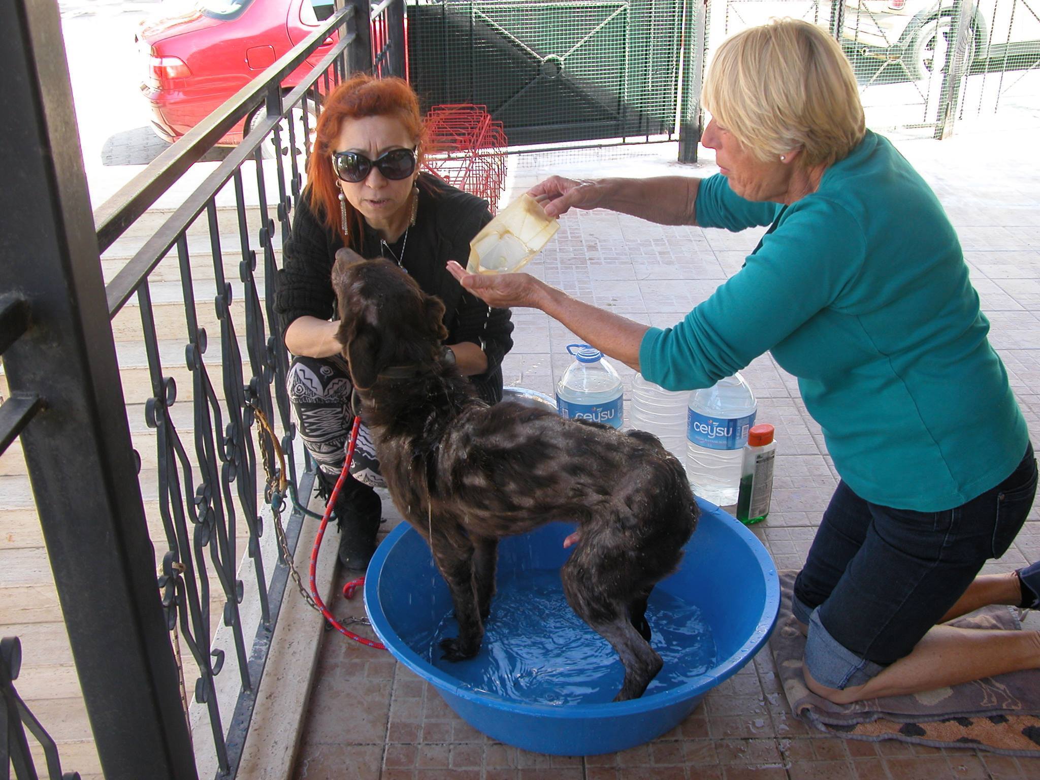 - One of many regular baths to treat their mange
